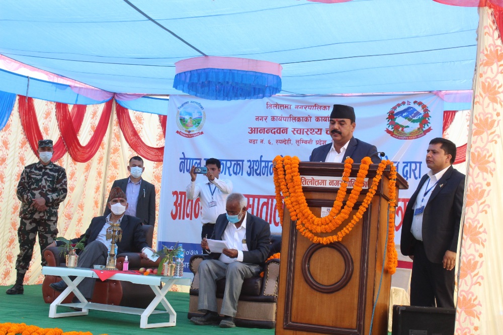 तिलोत्तमा। रुपन्देहीको तिलोत्तमा नगरपालिका वडा नं. ६ गोरकट्टामा निर्माण हुने १५ शैंयाको सरकारी अस्पतालको बिहिबार शिलन्यास गरिएको छ । हरेक पालिकामा कम्तिमा एउटा १५ शैंयाको सरकारी अस्पताल निर्माण गर्ने संघीय सरकारको नीतिअनुसार बन्न थालेको आनन्दवन अस्पतालको अर्थमन्त्री विष्णु पौडेलले शिलन्यास गर्नुभयो ।